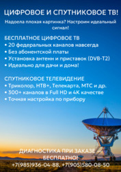 Опытный мастер выполнит настройку, диагностику, ремонт антенного оборудования.
